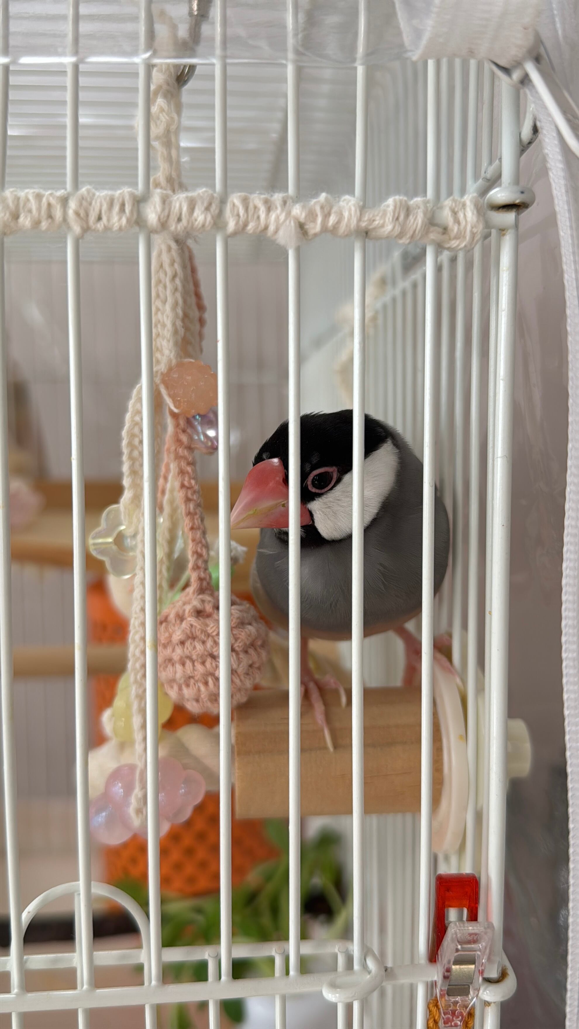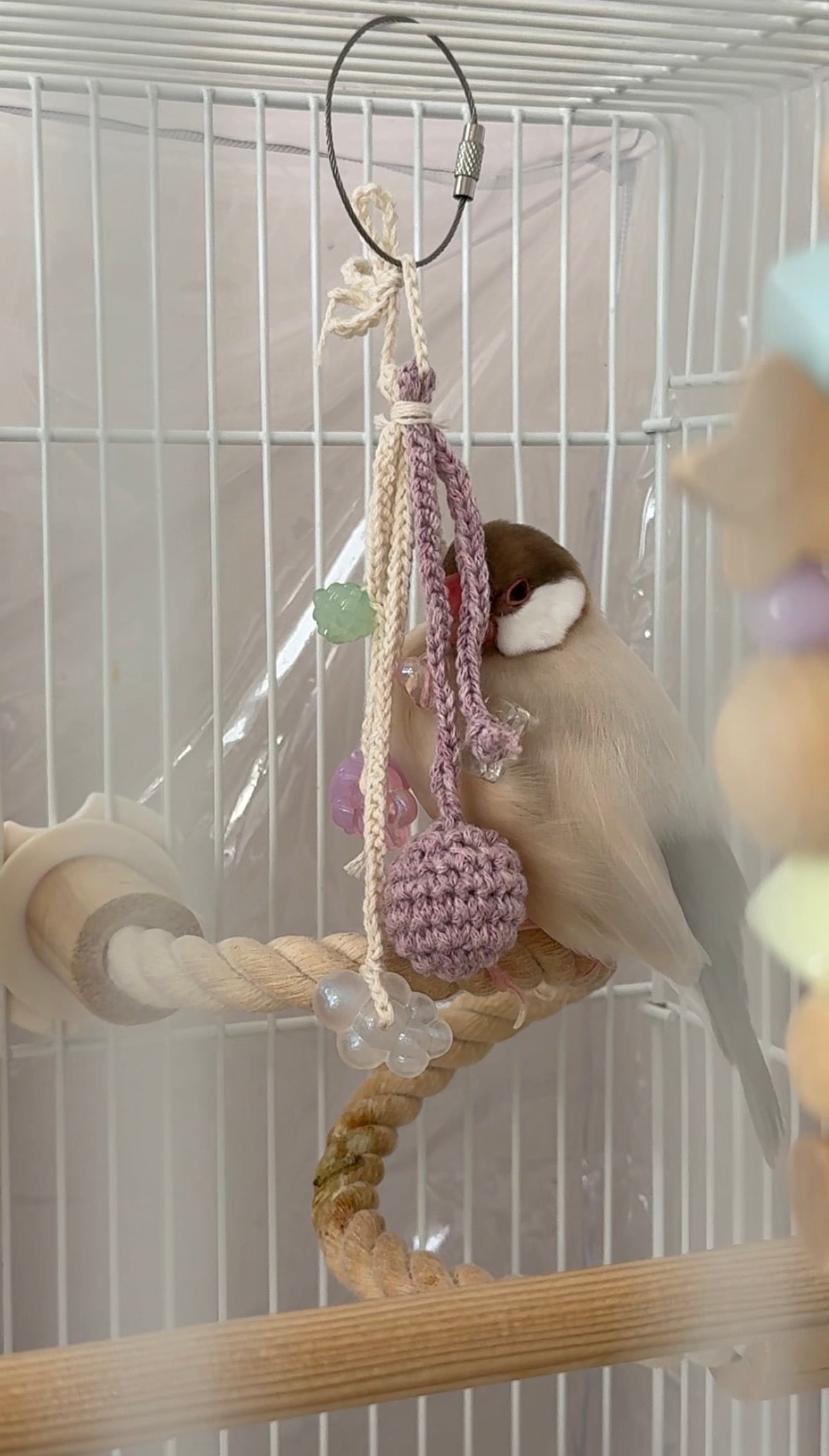 ※クロッシェボール(編んだボール)は小鳥さんが気に入って遊びすぎた場合、